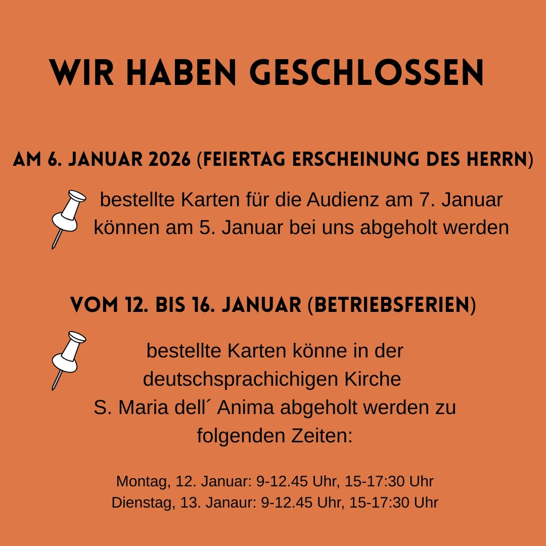 - An folgenden Terminen finden aktuell keine Audienzen statt: 25.02.2026